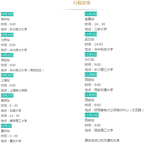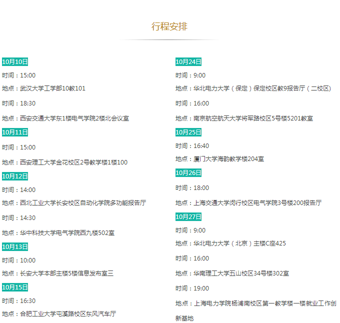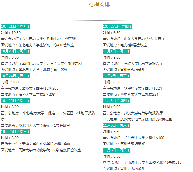 招聘需求:①985院校、華北電力大學、原電力部屬老六校電工類專業(yè)本科生、研究生;②一般院校電工類專業(yè)研究生。行程之外但滿足招聘對象要求的畢業(yè)生可就近參加。