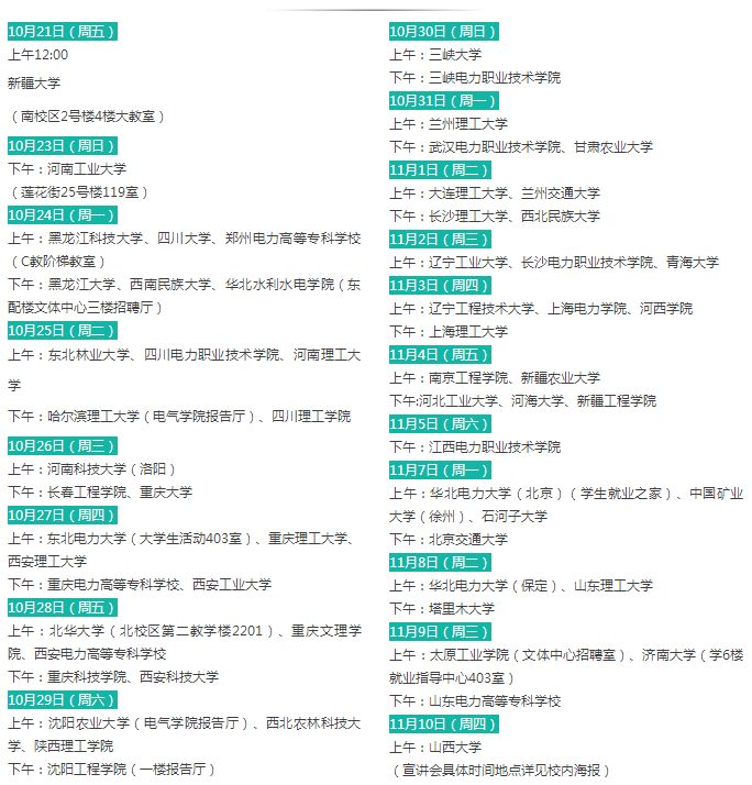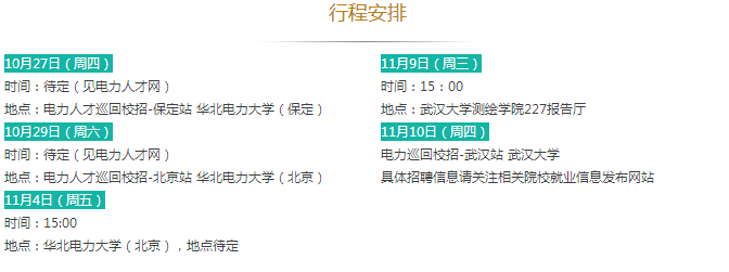 說明:符合招聘條件的其他學校畢業(yè)生也可參加以上四所學校的校園招聘(若未參加校園招聘還可參加12月份國網(wǎng)公司統(tǒng)一組織的第一批考試)。