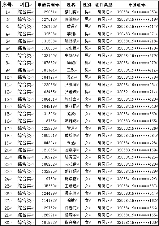 注意事項(xiàng): 1、名單按照專(zhuān)業(yè)科目和姓氏首字母順序排名。 2、2014年12月12日17:00起考生可登陸繳費(fèi)網(wǎng)站(http://jsnx.campustest.cn)查詢(xún)成績(jī)。 3、省聯(lián)社根據(jù)本行招聘計(jì)劃和考試成績(jī),按一...