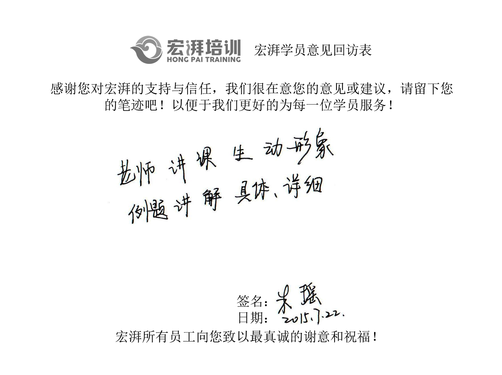 宏湃學(xué)員心聲