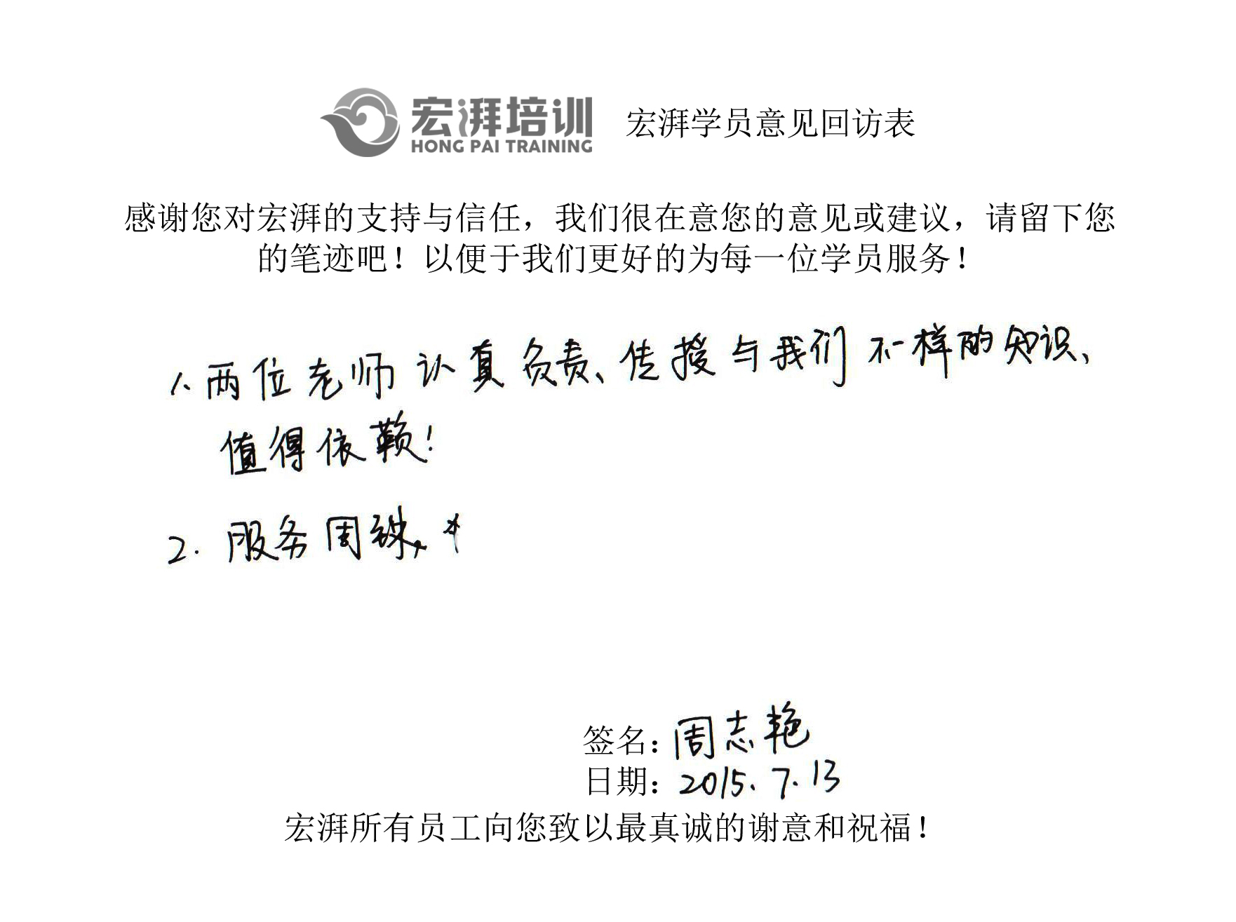 宏湃學(xué)員心聲