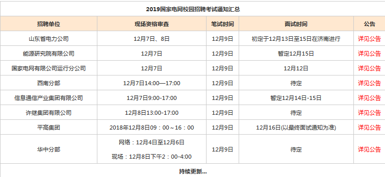 2019國家電網(wǎng)校園招聘將在12月9日進(jìn)行筆試,12月7日進(jìn)行現(xiàn)場資格審查。2019國家電網(wǎng)校園招聘考試通知匯總,希望可以幫助大家順利報(bào)考。