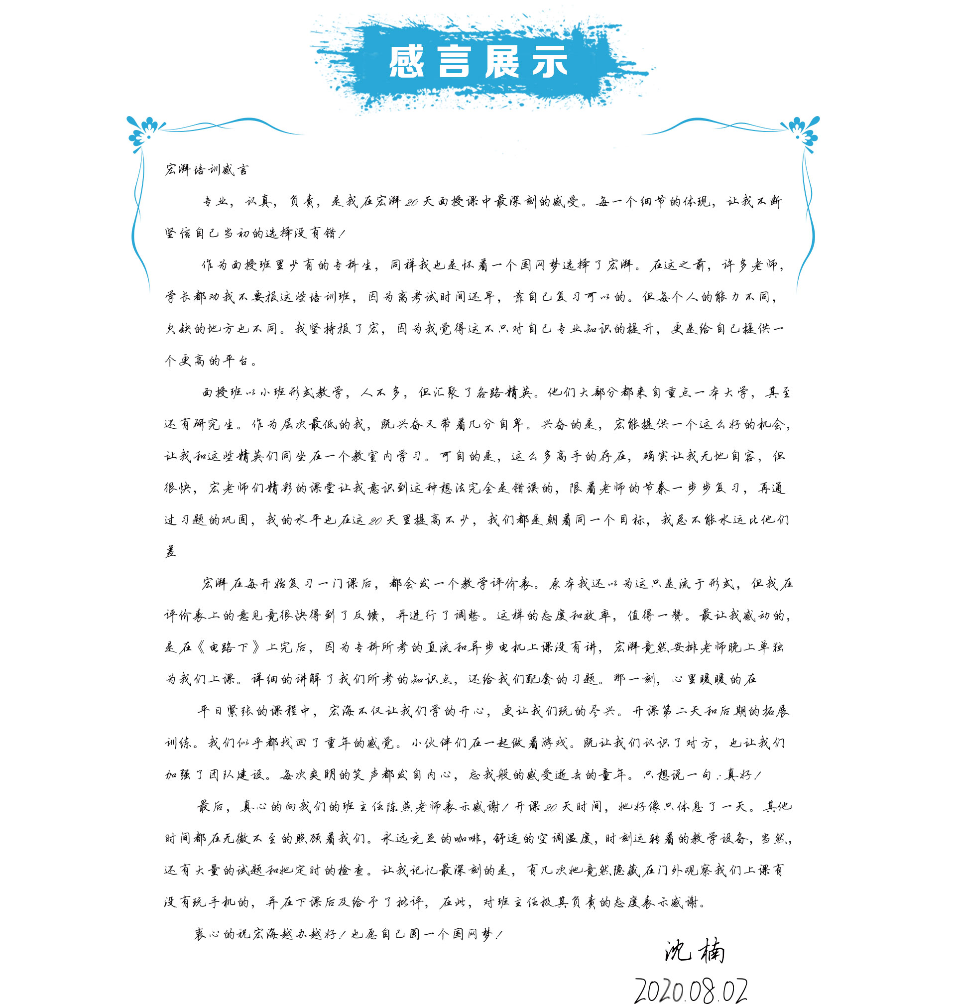 宏湃學(xué)員入職感言