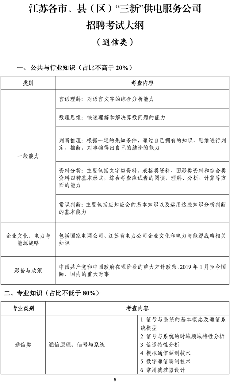 2020江蘇各市、縣(區(qū))“三新”供電服務(wù)公司招聘考試大綱(通信類)