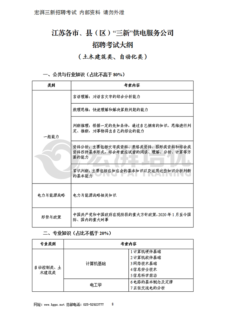 2021江蘇各市、縣(區(qū))“三新”供電服務公司招聘考試大綱(土木建筑類、自動化類)