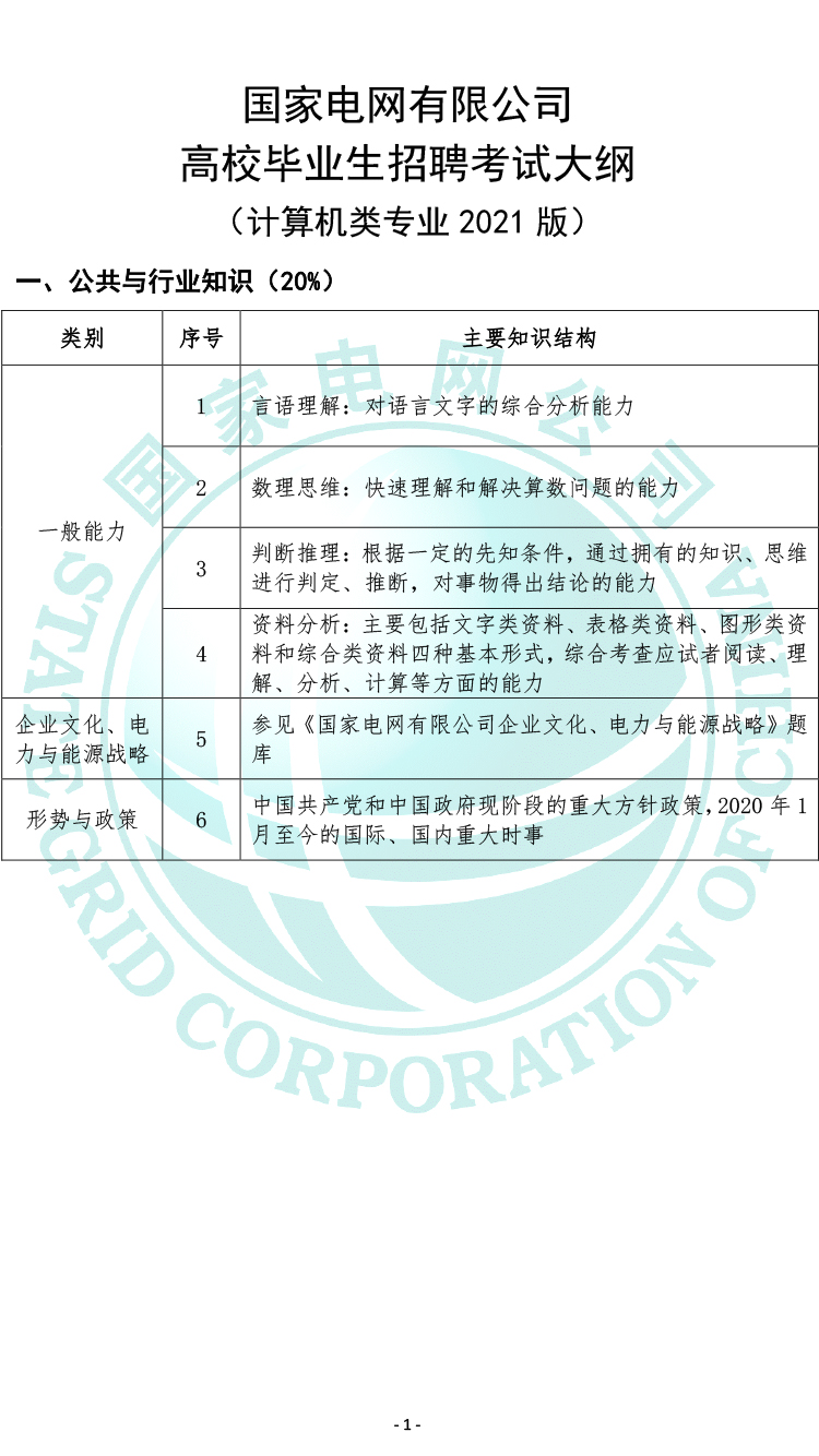 2021國家電網(wǎng)有限公司高校畢業(yè)生招聘考試大綱(計算機類專業(yè))