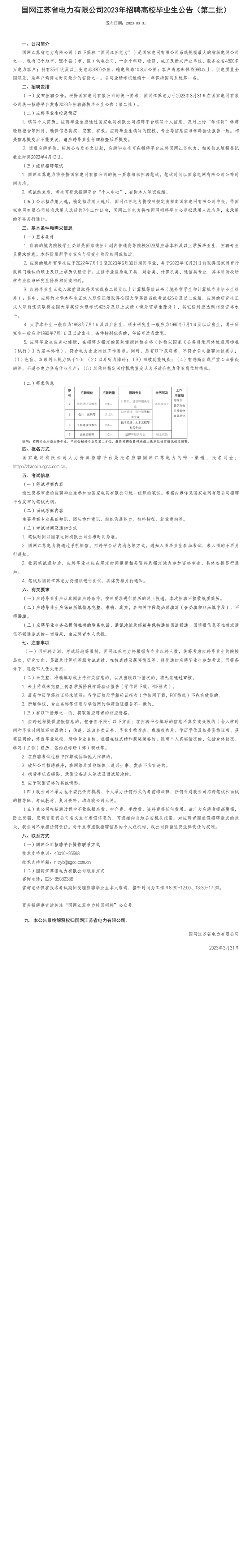 國網(wǎng)江蘇省電力有限公司2023年招聘高校畢業(yè)生公告(第二批)