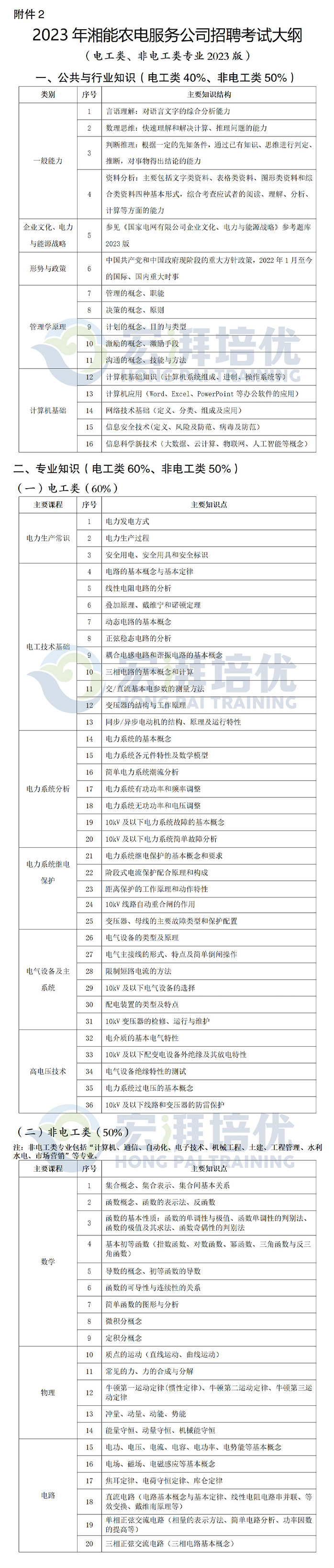 2023年湘能農(nóng)電服務(wù)公司招聘考試大綱